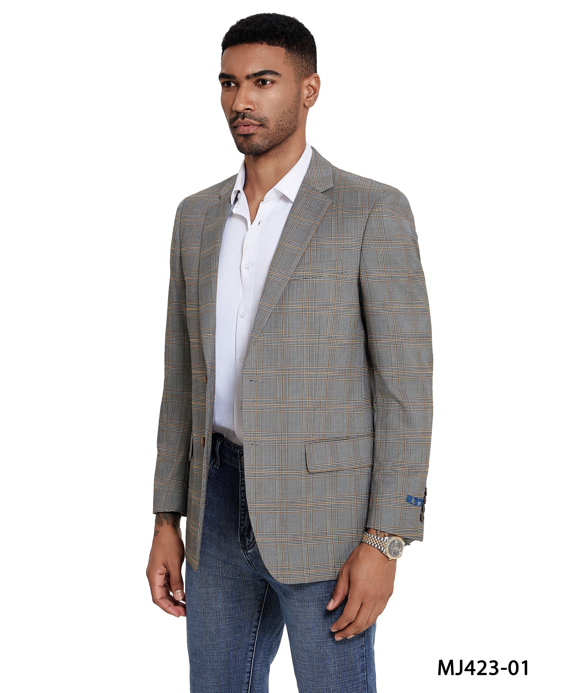 Men's Modern Fit Windowpane Sport Coat w/ Notch Lapel