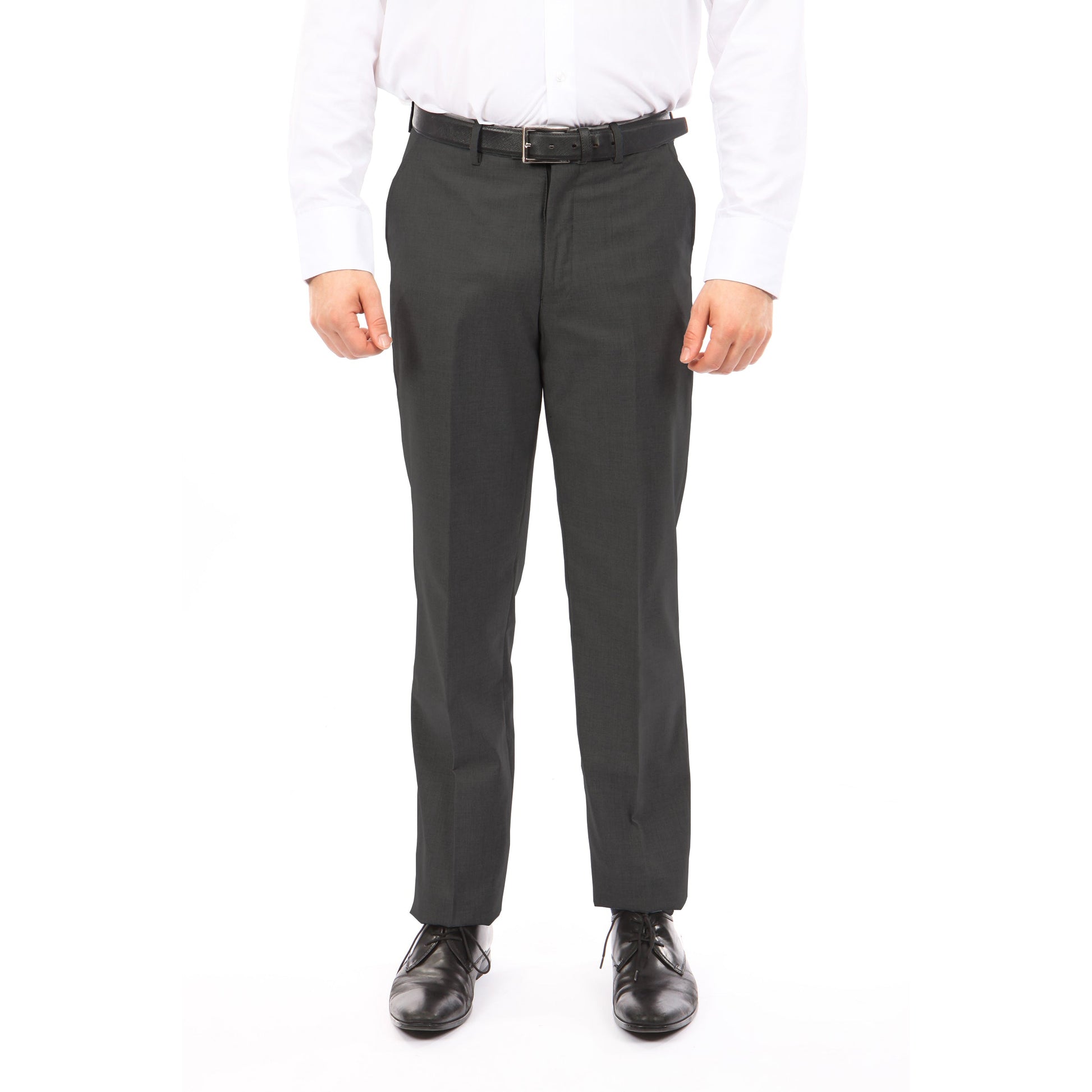 Slim Fit Hemmed Bottom Dress Pants Solid Grey