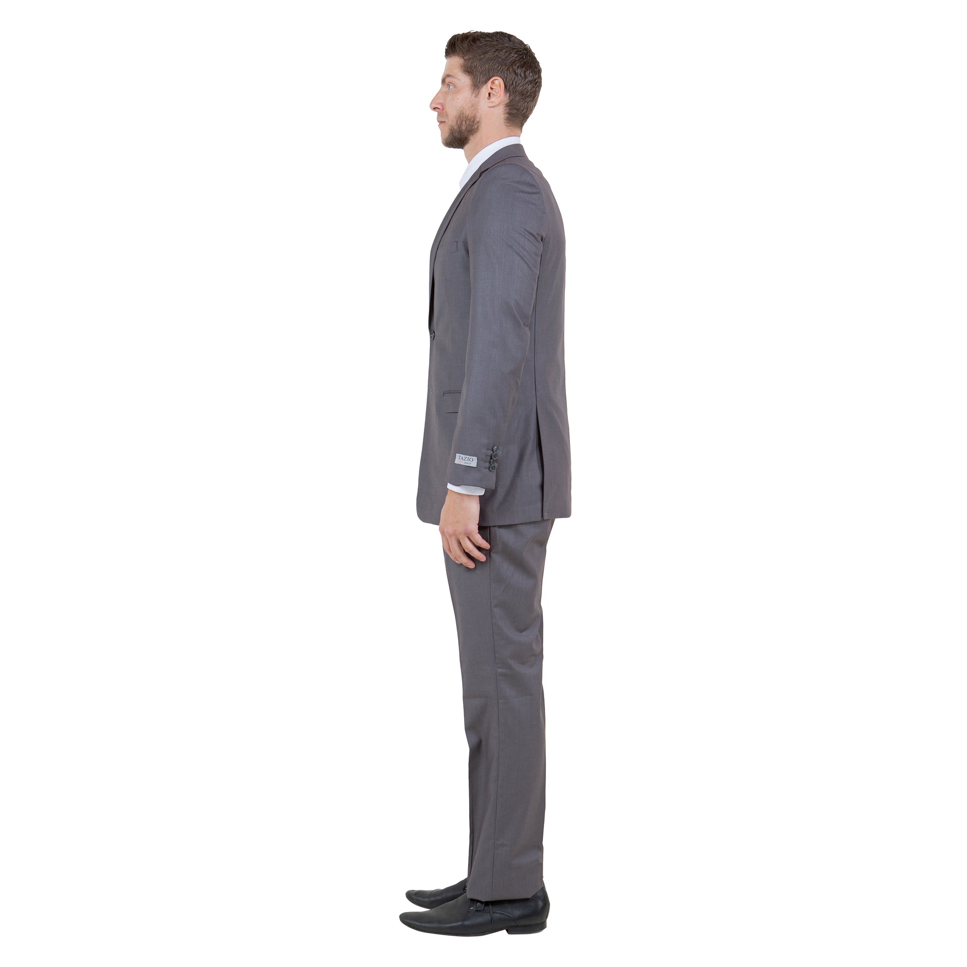 Step into sophistication with the Men's Tazzio Slim-Fit 3pc Suit in refined mid-gray by Tazio. Meticulously tailored, the jacket features a slim fit, slim notch lapel, and two-button closure with side vents for comfort. The coordinating vest and flat front pants complete the ensemble, boasting practicality and elegance. Perfect for formal events or business meetings, this suit ensures you make a lasting impression.