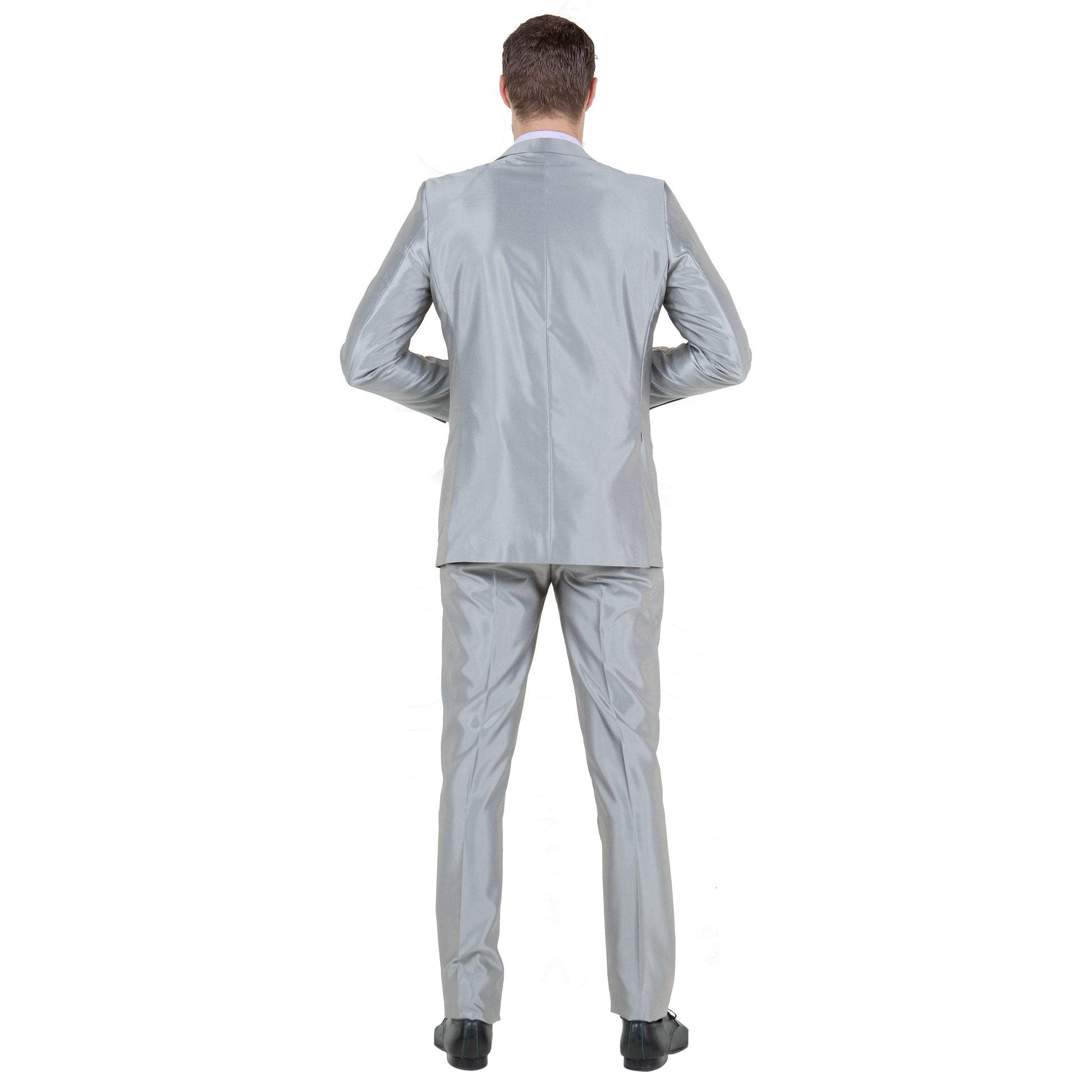 Silver Men's Sharskin Slim-Fit 3-Piece Suit