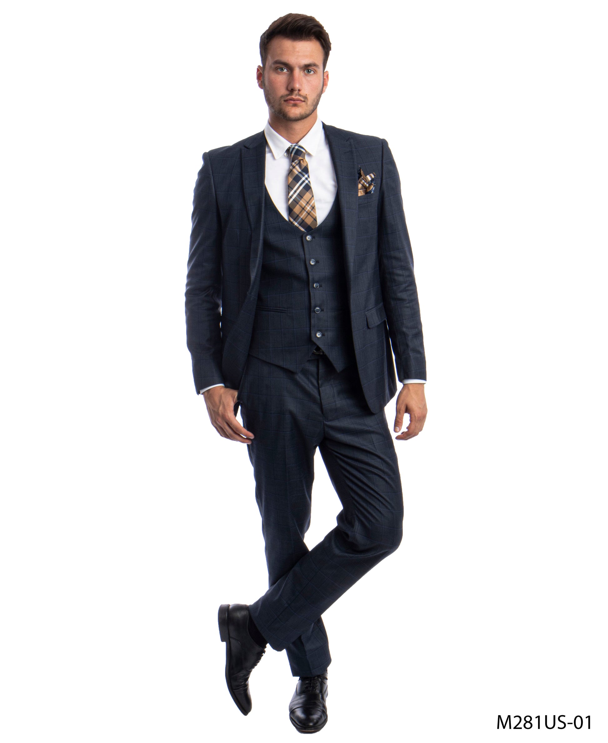 Mens Formal Suit 3-PC Windowpane Ultra Slim Fit Suit for Men